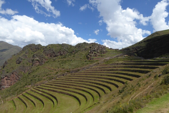 Cuzco, nous voilà, à nous les incas ! Nous entrons dans la vallée sacrée des Incas, leur capitale que se llama Cuzco et le Machu Picchu qui trône tout la haut et tout là-bas au loin. Pour commencer nous découvrons une ville sublime, la plus belle depuis le début de notre voyage en Amérique du Sud, il faut dire qu'ils s'en sont donné du mal les colons pour se l'approprier. La ville batie sur les formidables fondations incas et leurs murs de pierres parfaitement taillées à la main ont supportés tous les séismes des siècles durant pendant que de nombreuses constructions espagnoles s'effondraient. Nous profitons de cette région chargée d'histoire pour visiter la vallée sacrée dénommée ainsi par les incas, en raison de ses terres fertiles et de la proximité de la rivière Urubamba. Nous passons la journée entre vestiges (interdit de dire ruine ici!) Et milliers de terrasses cultivées à flanc de montagnes. Courageux ces incas!