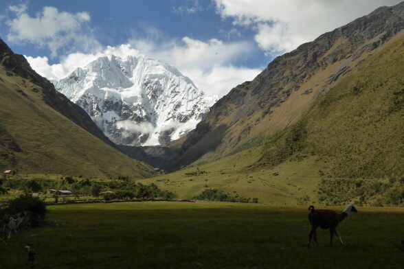 Mais surtout, Cuzco est le point de départ vers le fameux Machu Picchu, à l'extrémité ouest de la vallée sacrée. Ne souhaitant pas y aller comme la plupart des touristes, en train horriblement cher ou en bus, nous avons choisi de marcher sur les sentiers incas qui y accédait. L'originel Inca trek booké depuis des mois, nous nous rabattons sur le non moins beau Salkantay trek. C'est a 4h30 que le minibus vient vous chercher pour commencer l'aventure, accompagnés de nos 9 compagnons de chemins. Pour ce premier jour, on nous avait promis 20 kms de marche jusqu'au campement, c'est un peu déçus que nous constatons qu'un bon tiers de l'ascension se fera en camion à vaches, le nez au vent. Tampis, nous marcherons neanmoins près de 5 heures avec une vue imprenable sur 2 sommets enneigés à 6000 (dont le Salkantay).