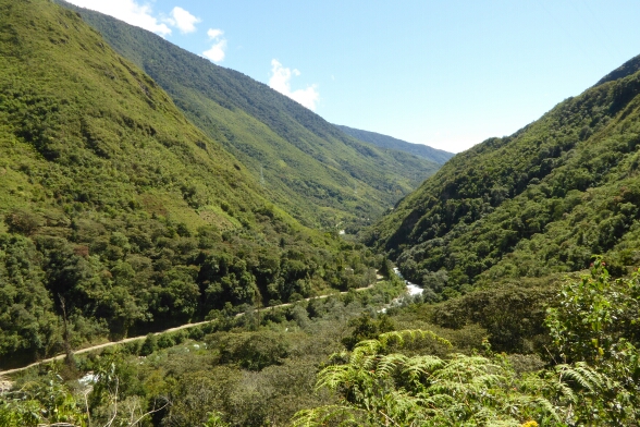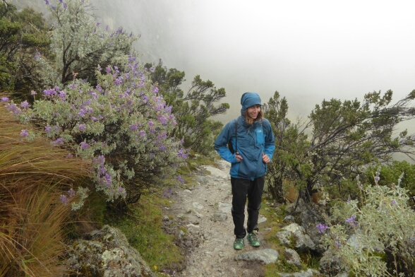 Une fois cette longue pause achevée, nous repartons pour 3h de descente sous la pluie mais vers des températures plus douces dans la forêt. Malgré le temps pourri (et les intestins pourris) nous avons adoré ces 7-8h de marche (et Jm se porte mieux! Hourra!). Le troisième jour, on est sensé suivre le chemin Inca dans la forêt mais notre guide (un peu paresseux?) nous oblige à suivre la route sous prétexte d'éboulement sur le sentier. Ce n'est pas faute d'avoir insisté de nombreuses fois avec Saraya et Tiji, les 2 autres bons marcheurs du groupe, mais nous nous rendons à l'évidence,Luis, le guide ne veut pas s'embêter a diviser le groupe. Il faut le dire, on fait les francais mais on râle un peu... A notre décharge, Tiji et Saraya sont brésilien et canadien et râlent autant que nous!