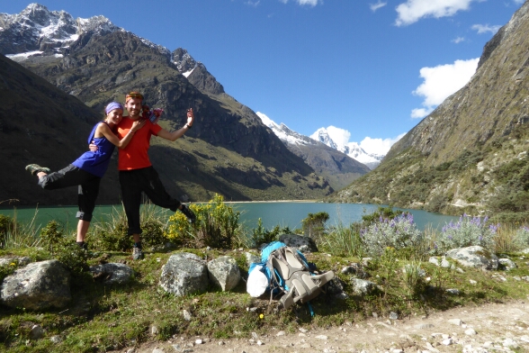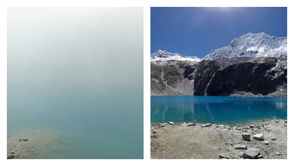 Seulement 21 heures de bus nous auront suffit pour rejoindre Lima, où nous profitons de nous reposer pendant deux jours sans aucune visite au programme, trop la flemme. Aller hop, c'est reparti pour une nuit de bus vers Huaraz et la Cordillère Blanche, considérée comme une des plus belles chaines de montagne du monde avec le majestueux Huascaran, sommet du Pérou. Nous arrivons sous des trombes d'eau et nous apprenons qu'ici cela dure depuis des jours et ce n'est pas prêt de s'arranger. Les trekkeurs sont moroses... Qu'importe, nous bravons les prévisions et sautons au petit matin dans un collectivo qui nous emmène au depart de la rando vers la laguna 69, l'un des plus beau lac d'altitude de la région perché dans un décors grandiose de haute montagne. Notre enthousiasme n'aura pas raison du temps pourri et une fois la pluie arrêtée... on a la neige!