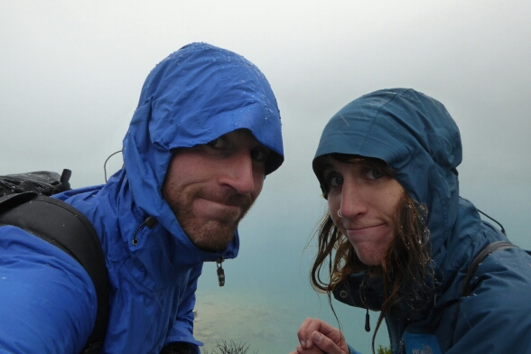 Nous passerons 5h de galère jusqu'à 4600m sous la flotte avec pour seul decors l'opacité impénétrable des nuages... Ca huchait sous la capuche!