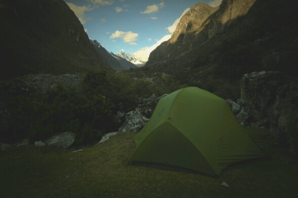 A 4100m, la nuit est bien fraiche et nous sommes soulagés lorsque le jour ce lève enfin. Le thermomètre affiche 3 degrés sous la tente mais les gouttes gelés sur la toile nous confirme que la nuit à été glaciale, JM a même laissé ses doigts en allant faire la vaisselle dans le torrent. Ce matin, un simple aller-retour nous permet d'admirer l'Alpamayo, le plus photogénique des sommets du parc du Huascaran et l'Artesonraju sous son angle le plus connu.