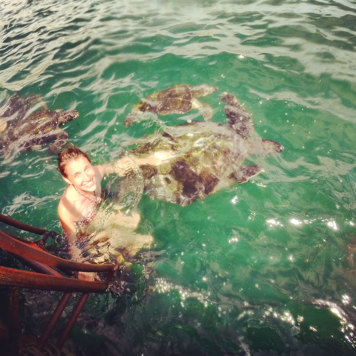 On usent nos serviettes sur la plage pendant deux jours et le troisieme, on change de spot pour nager avec de nouvelles copines, des tortues. Un peu paniques au debut lorsqu'au milieu de l'eau elle viennent nous chatouiller les pieds, nous nous retrouvons vite en admiration devant ces grands reptiles que nous pouvons approcher et toucher sans se faire bouffer. Petit instant magique lorsqu'on arrive a occulter la madame qui les appate en leur lancant des poissons toute la journee. On vous rassure, on y est parvenu sans mal!
